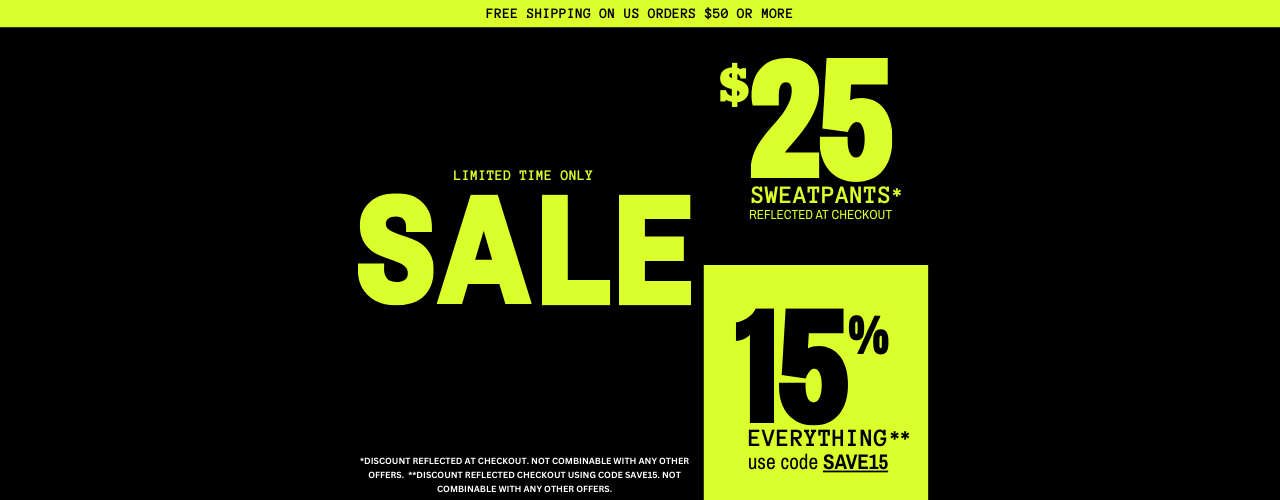 15% OFF EVERYTHING (USE CODE SAVE15) PLUS ENJOY $25 SWEATPANTS